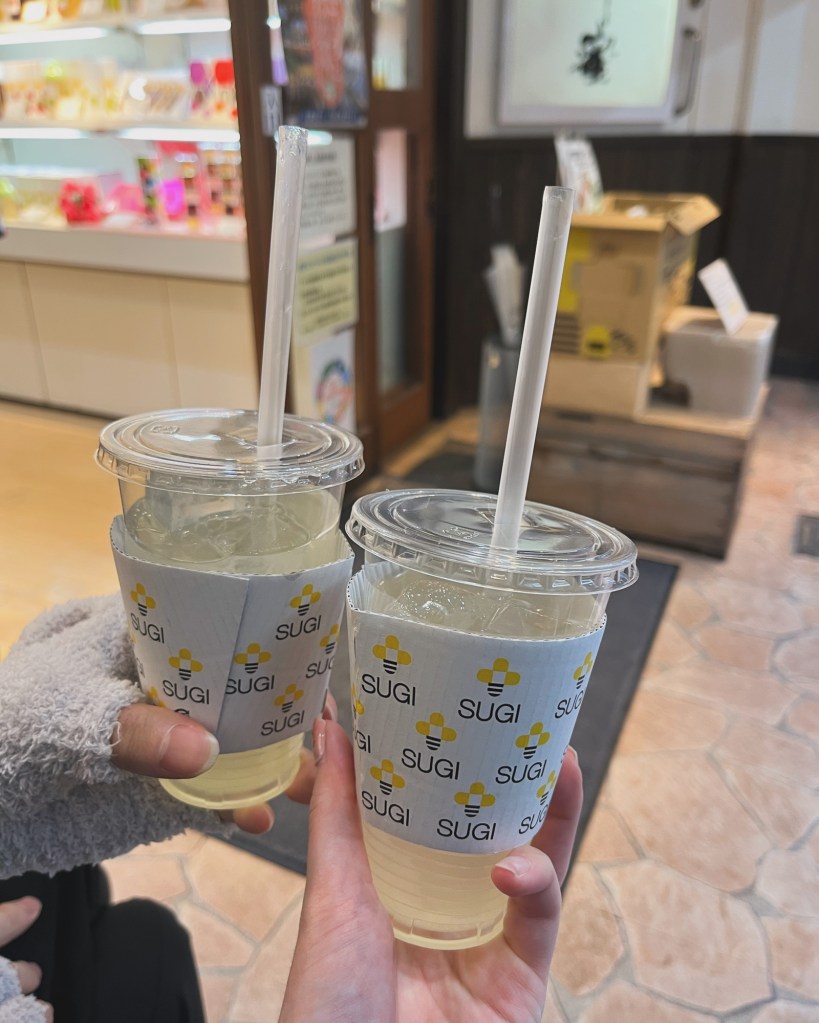 Menu prices range from around 350 – 1200 yen (this may vary based on location and inflation). You can order iced honey drinks, hot honey tea, and honey-vanilla ice cream! There is a rather large arrange of drink flavours, and some are better than others. Currently, my favourite is the iced yuzu drink, while my least favourite is the iced blueberry.