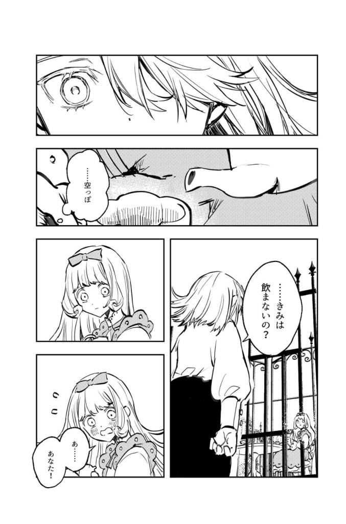 Noir and Fio’s first encounter is so cute! She is having a make-believe tea party by herself, and subsequently gets embarrassed when she realizes Noir is watching.