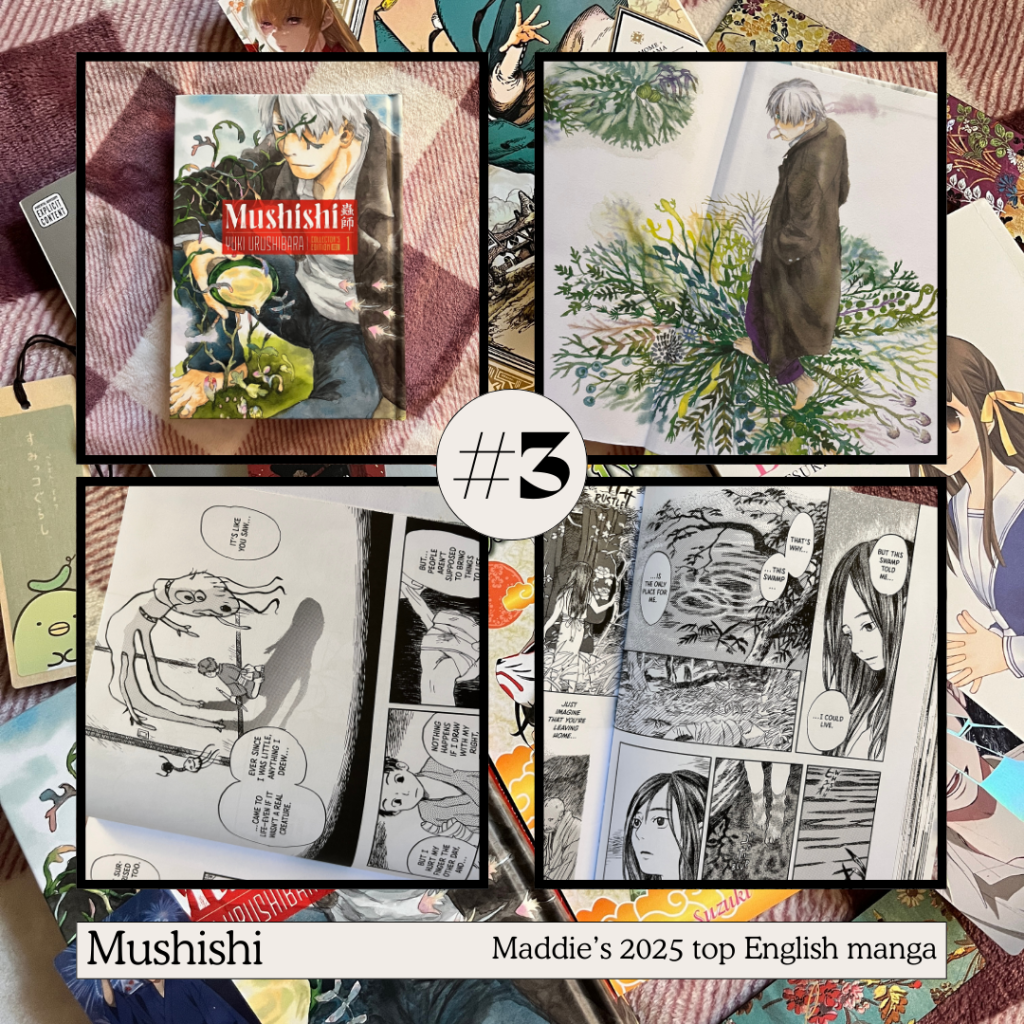 I cannot believe it took me this long to read this series. Mushishi follows Ginko, a man who helps those plighted by creatures called “mushi”. Each chapter follows Ginko helping, or sometimes just watching, different characters he meets during his travels. Sometimes he is able to help solve problems, and other times there aren’t really any problems to solve. This series really focuses on following Ginko during his travels. The storytelling really helps immerse you into the story, at least it did for me, as it feels just about as real as a fantasy series can feel. Perhaps because a lot of it is based on Japanese folklore, or perhaps it’s because Ginko isn’t portrayed as some all-powerful characters, this was such a comforting read for me.